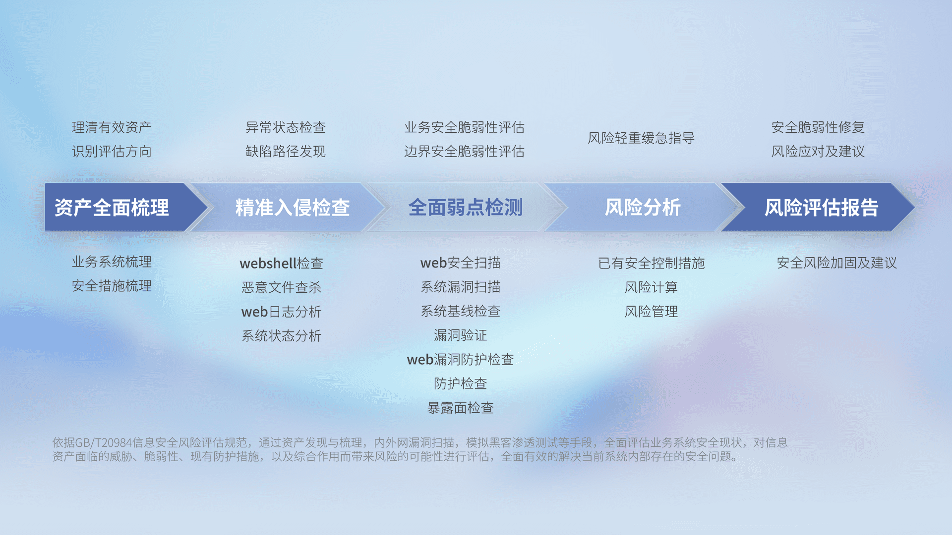 针对客户行业特性,,,以专业的安全服务+多厂商联合解决方案提供专属的一站式安全管理服务,,,帮助客户全面感知网络空间威胁,,,基于识别、、、、检测、、分析、、防护、、监测、、、、响应的服务理论模型,,从方案咨询、、、、集成交付、、、评估验证、、优化加固、、、运维运营,,致力于为客户提供完整的闭环管理式安全服务。。。以实战经验为客户打造高抵御风险的安全体系,,帮助客户发现威胁、、对抗威胁、、、处置威胁,,,,不断积累安全对抗能力,,,,持续保障数字化安全。。